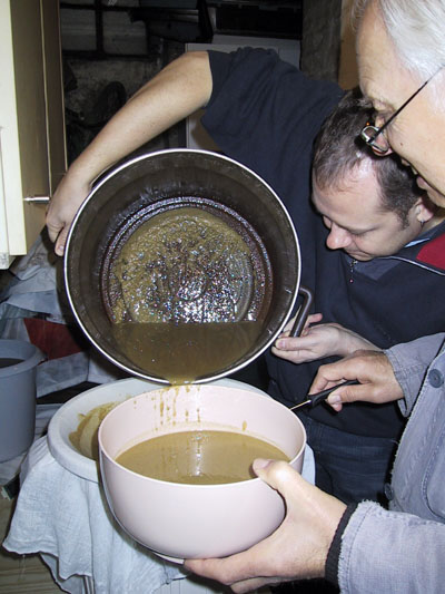 Hier wird das Bier in unserer Küche eingemaischt.