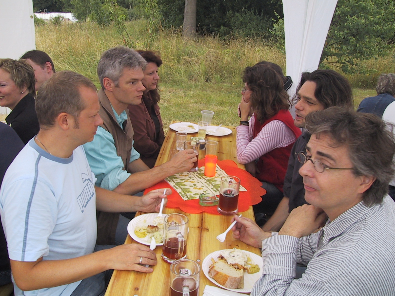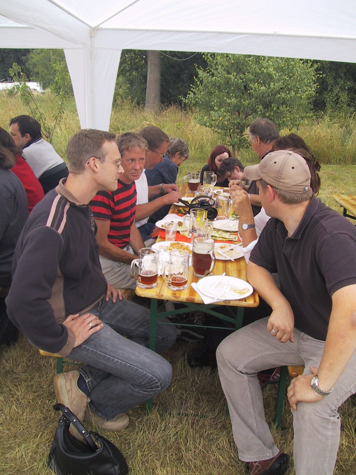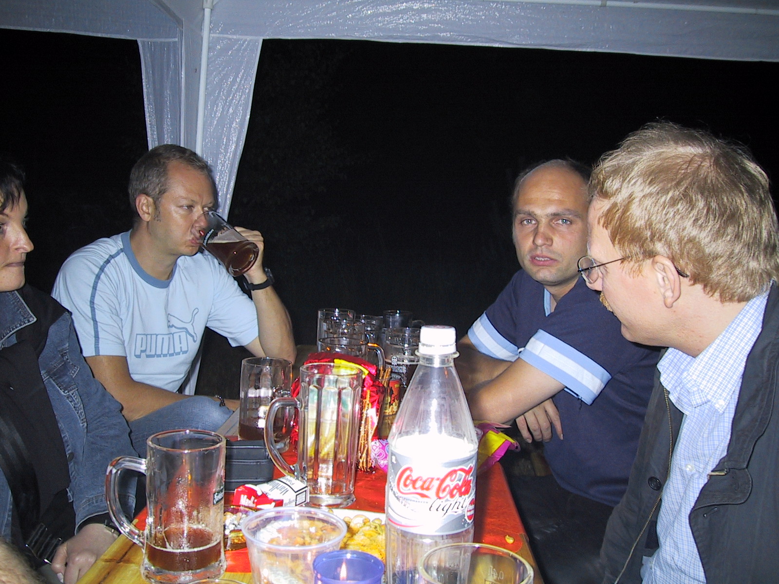 9.7.2005, von 17 bis 4 Uhr, ca. 70-80 Leute, gutes Wetter, reichlich Bier, alles super.