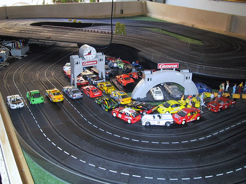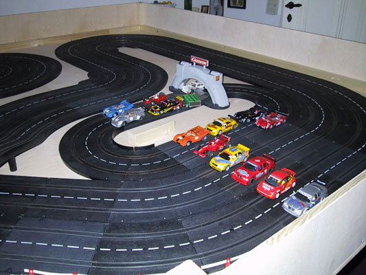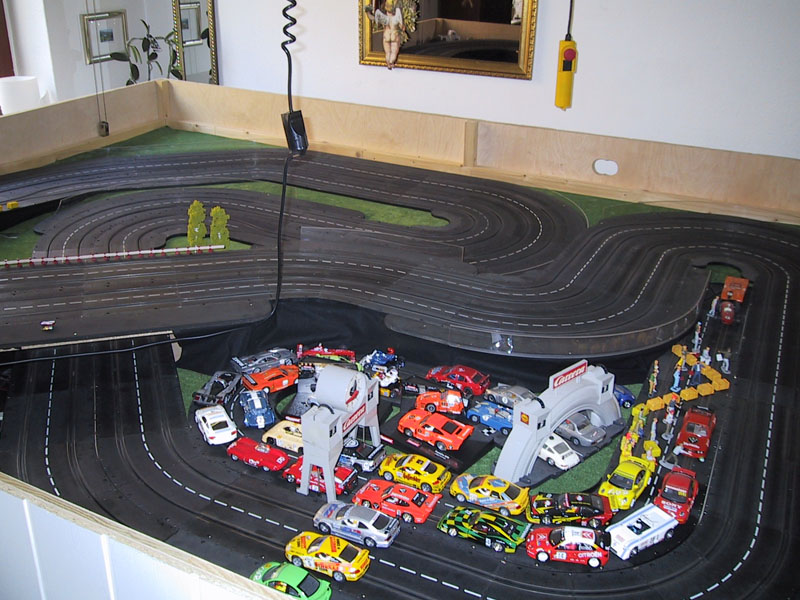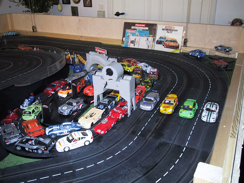 Boxengasse mit Rundenzeit-Strecken, einige Bäume und ähm die Autos sind ein paar mehr geworden. Besonders stolz bin ich auf die Carrera-Sonderedition Porsche 911 silber und 935 Jägermeister,
