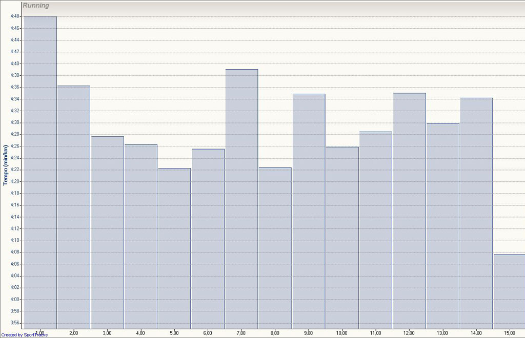 so lief ich recht konstant die 15km durch. Gegen Ende hörte ich auf einmal das Führungsmotorrad der 20km Läufer hinter mir, in diesem Jahr wollte ich aber nicht überrundet werden und deshalb war der