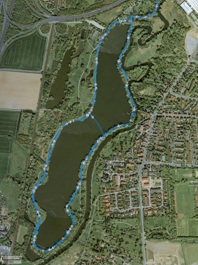 rechnen, wenn ich bei den Witterungen unterwegs bin. Auf dem rechten Bild meine neue Laufstrecke mit halben Runden um den Südsee, Abkürzung über das Wasser. Sonntag 16km langsamer Lauf