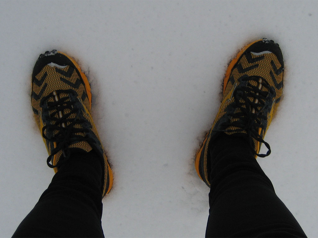 Lauf bin ich nur 16km gelaufen, die 2km zähle ich mir als Schneefaktor einfach drauf. Meine neuen Laufschuhe Mizuno Wave Cabrakan sind echt klasse, die krallen sich mit ihrem Profil richtig in den