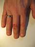 ausweichen musste. Mittelfinger aufgeschnitten an Eisplatten und dick (siehe rechts), Handgelenk, Knie und Ellenbogen rechte Seite geprellt. Hätte aber schlimmer kommen können, damit muss ich halt
