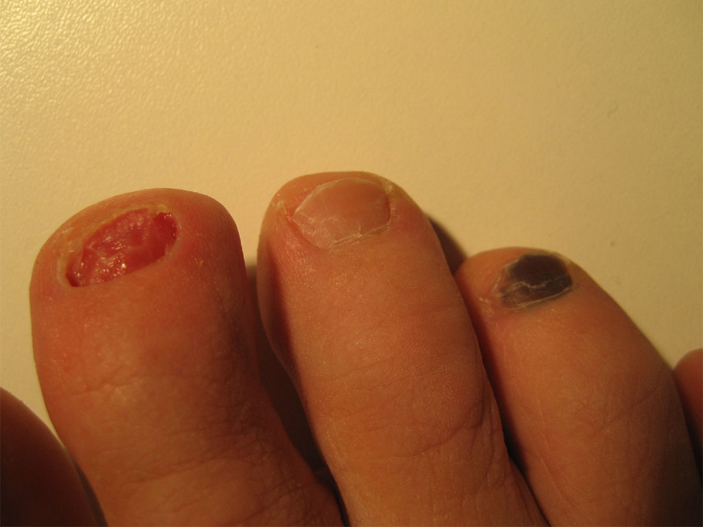 kurzer Prozess und 2 Tage Schmerzen, heute lief es sich schon wieder wie normal. Den schwarzen Zehnagel beobachte ich weiter, aber außer dass er eine andere Farbe hat ist alles OK damit.