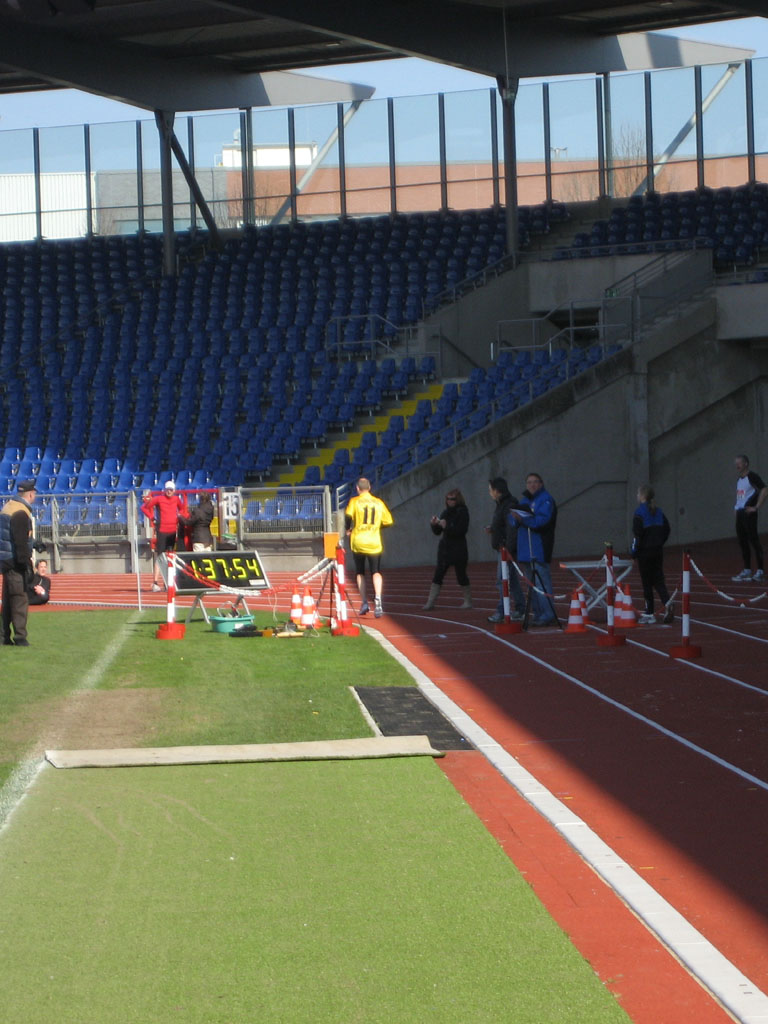 2011-03-28: Gestern der erste Wettkampf, Stadionlauf Halbmarathon. Ich war vorher ganz schön aufgeregt, die Tage vorher schmerzte