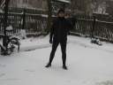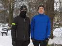 Dezember zu sehen, wie immer mit Tuch vor dem Mund, damit ich meine Bronchien schone. Das 2. Bild zeigt mich diese Woche bei etwas mehr Schnee, jetzt schon 15 Läufe auf Schnee und Glatteis, aber