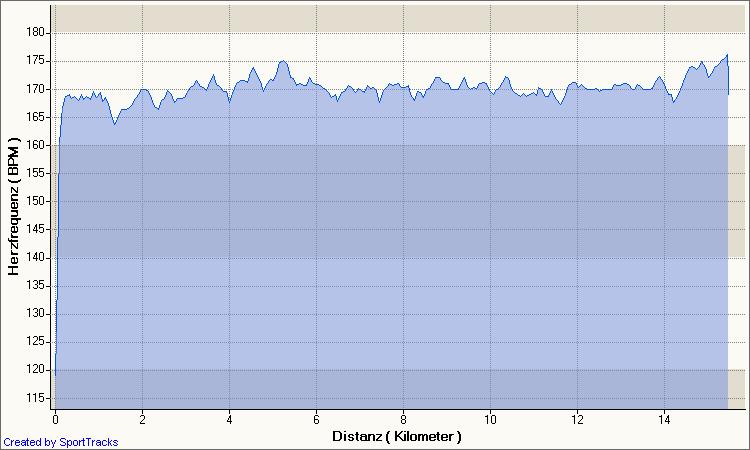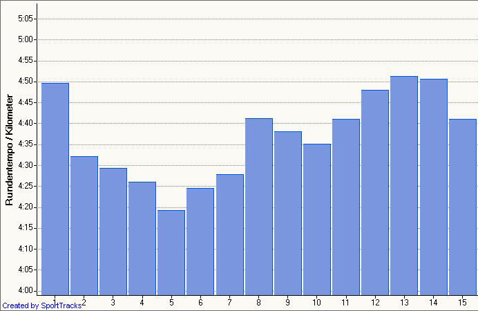losgelaufen. Der 1.km war mit knapp 5:00 Min/km noch verhalten, dann lief es aber besser und ich wurde schneller bis hin zu 4:20 Min/km, 5km hab ich bei 23,5 Min und 10 km bei 47 Min passiert. Geplant