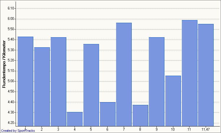 gelaufen, jeweils zwischen 10 und 12 km in Zeiten zwischen 5:30 bis hin zu 5 Min/km.