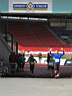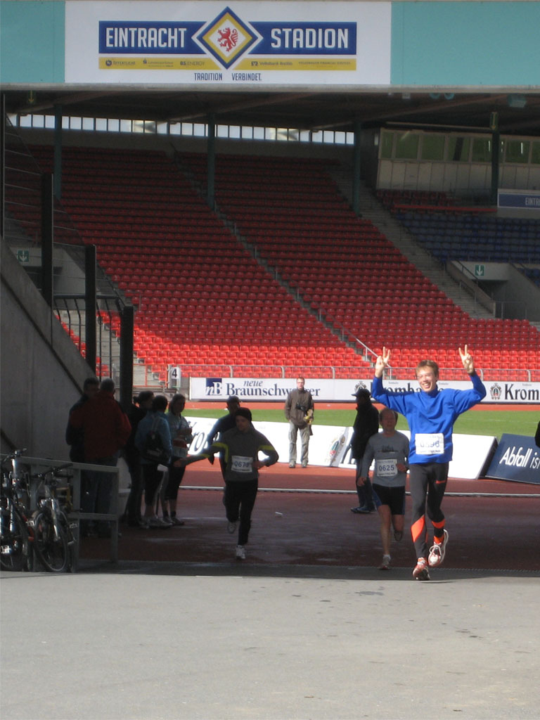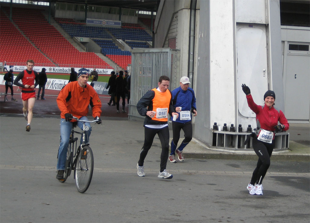 Den Mitläufer mit der gelben Regenjacke hatte ich abgehängt und er tauchte erst im Stadion wieder hinter uns auf, Arne meinte dass wir ihn nicht mehr vorbei lassen, trotzdem spurtete er plötzlich an