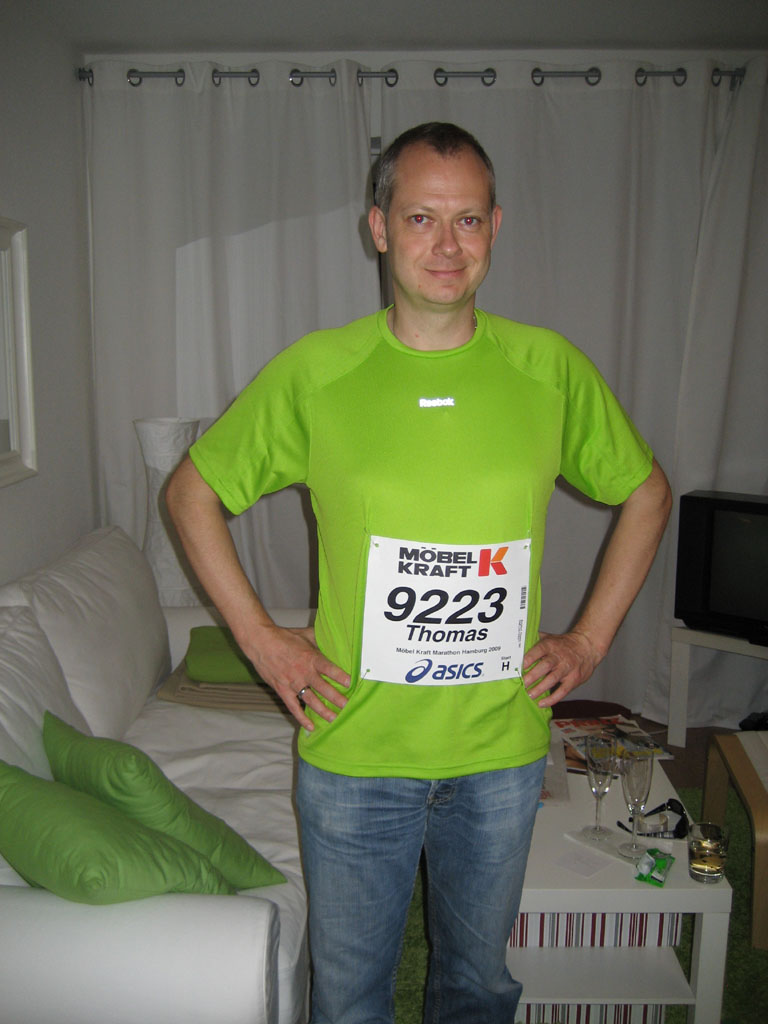 2009-04-24: Es ist geschafft, Finisher! Ingo und ich sind den Hamburg Marathon gelaufen und die ganze Lauferei (Schinderei) hat sich