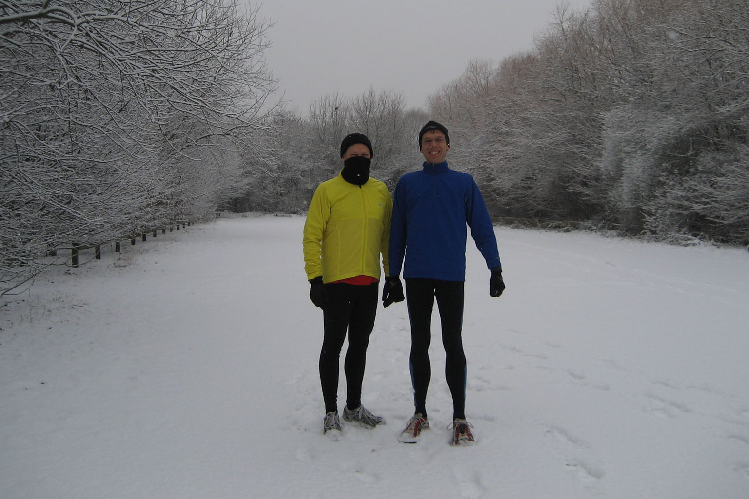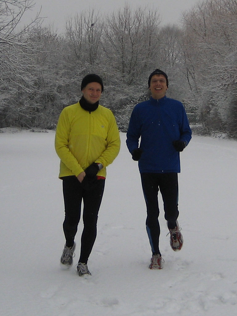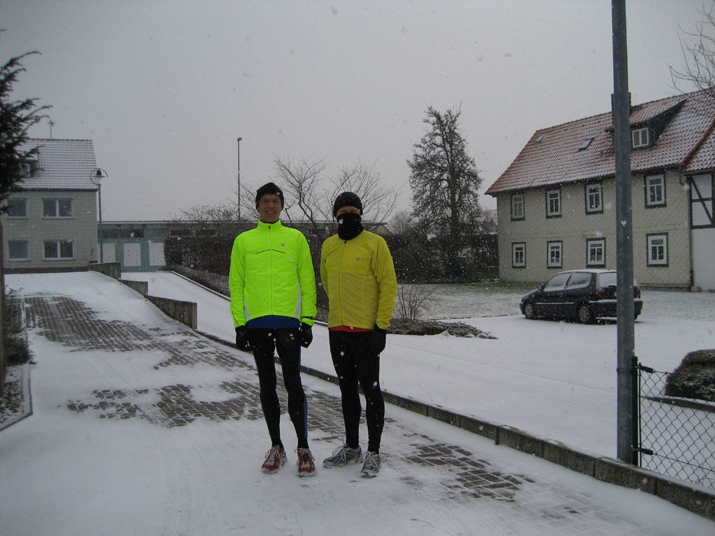 2009-01-02: Das Jahr 2009 begann mit einem Lauf bei Schnee, siehe die beiden Bilder. Da ich weiterhin Angst vor Erkältungen oder