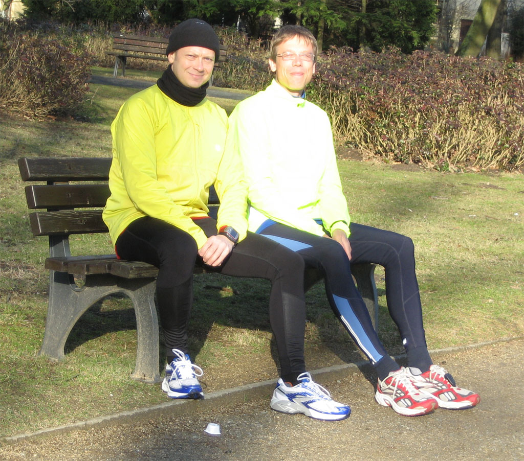 Berichte: Mittwoch (11.3.) war Ingo aus dem Wintertrainingslager Ägypten zurück und wir liefen 15 km zusammen, rechts ein Bildchen, zum Glück überstrahlt Ingos Laufjacke seine Urlaubsbräune, er