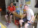 einen mentalen Teilerfolg verbucht. Zu Hause haben wir erst einmal ordentlich Getränke aufgetischt und vertrunken, siehe 2. Foto rechts. Auf dem Bild sehe ich ganz schön fertig aus, in Wirklichkeit war