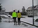 es dann auch aufgehört und wir waren nach 2:12 Stunden im Ziel, siehe Fotos rechts. Oberes Bild vor dem Lauf bei Schneefall und auf dem unteren Bild bin ich nach dem Lauf zu sehen, sehe doch noch ganz