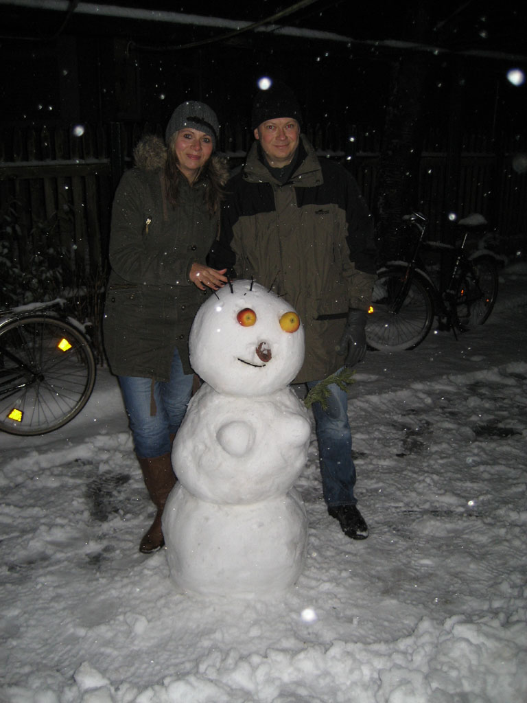 Spaziergang und Schneemann (frau) bauen mit Tine ersetzte, siehe Bild rechts. 6.1.: Nachts minus 18 °C und auch am Tag war es mir zu kalt zum Laufen, nicht dass ich wieder wochenlang ausfalle!